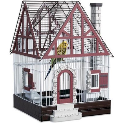 Shop for Bird Cages from BirdCages.com! The Featherstone Tudor Bird Cage recreates the charm of the classic Tudor home for your pet. .63 inch bar spacing makes the cage perfect for both small birds such as the parakeet and medium-sized birds such as the cockatiel.The spacious size of this cage promotes healthy activity while two perches provide comfortable seating. A removable floor and drawer along with two outside access cups make cleaning and feeding easy. A rooftop access door and a large entryway door add to the convenience. Requires minor assembly.The cage looks attractive in its pet-safe white and burgundy tones and has a sleek black base. Economical and durable the Featherstone Tudor Bird Cage makes a stylish home your pet will love.